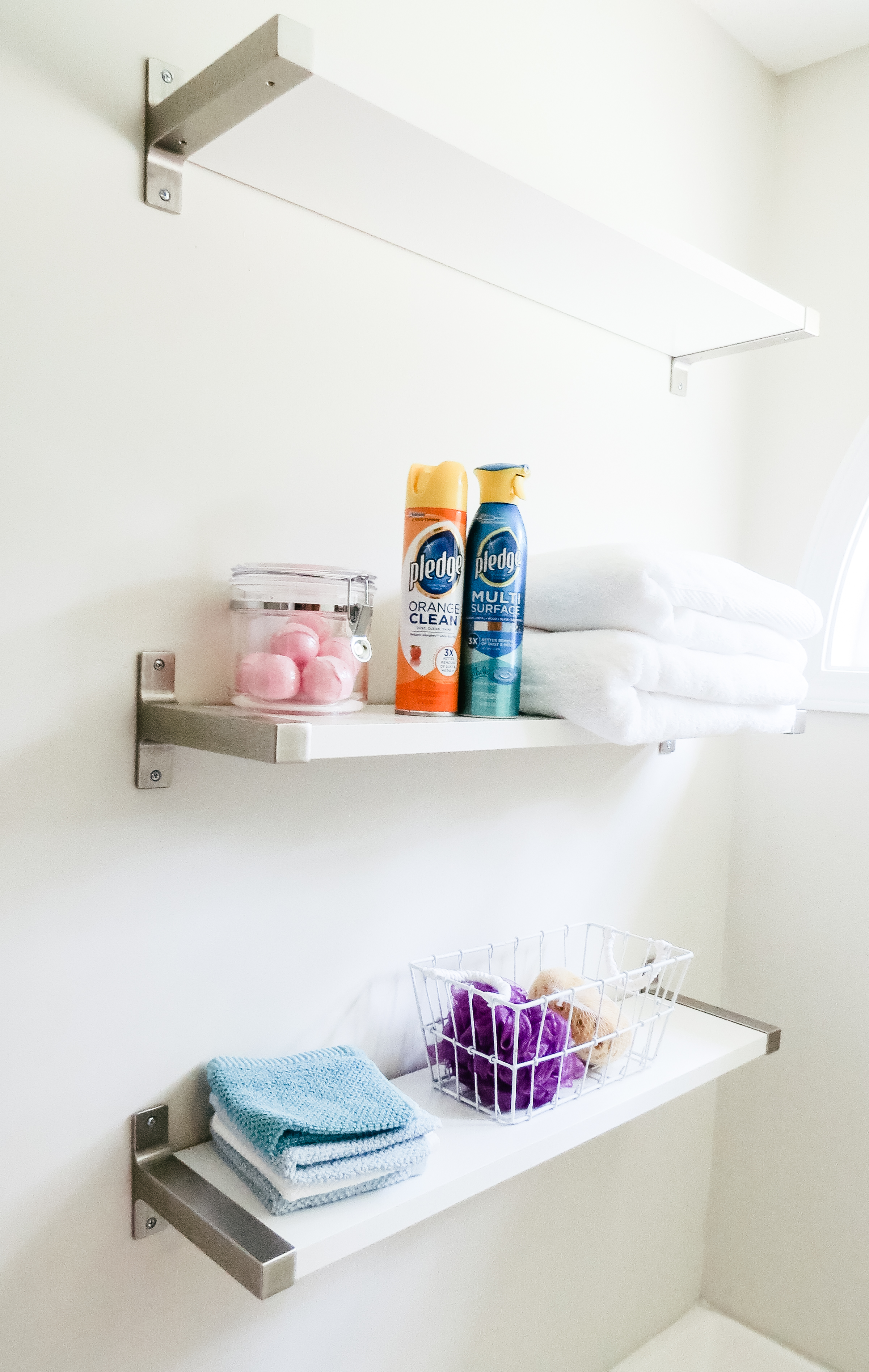But first let’s talk about that sparkle in the bathroom and how to keep this special space feeling like a spa. I use Pledge® Orange Clean Furniture Spray to keep my cabinets clean, dust-free, and have that sparkle feeling. It helps with the entire spa-like experience in the bathroom. I use it to renew the area if I want to plan a night in and take my time to enjoy some bubbles and my current playlist. I love the orange scent and how it keeps dust down in the bathroom. Because who wants to sneeze in the spa?