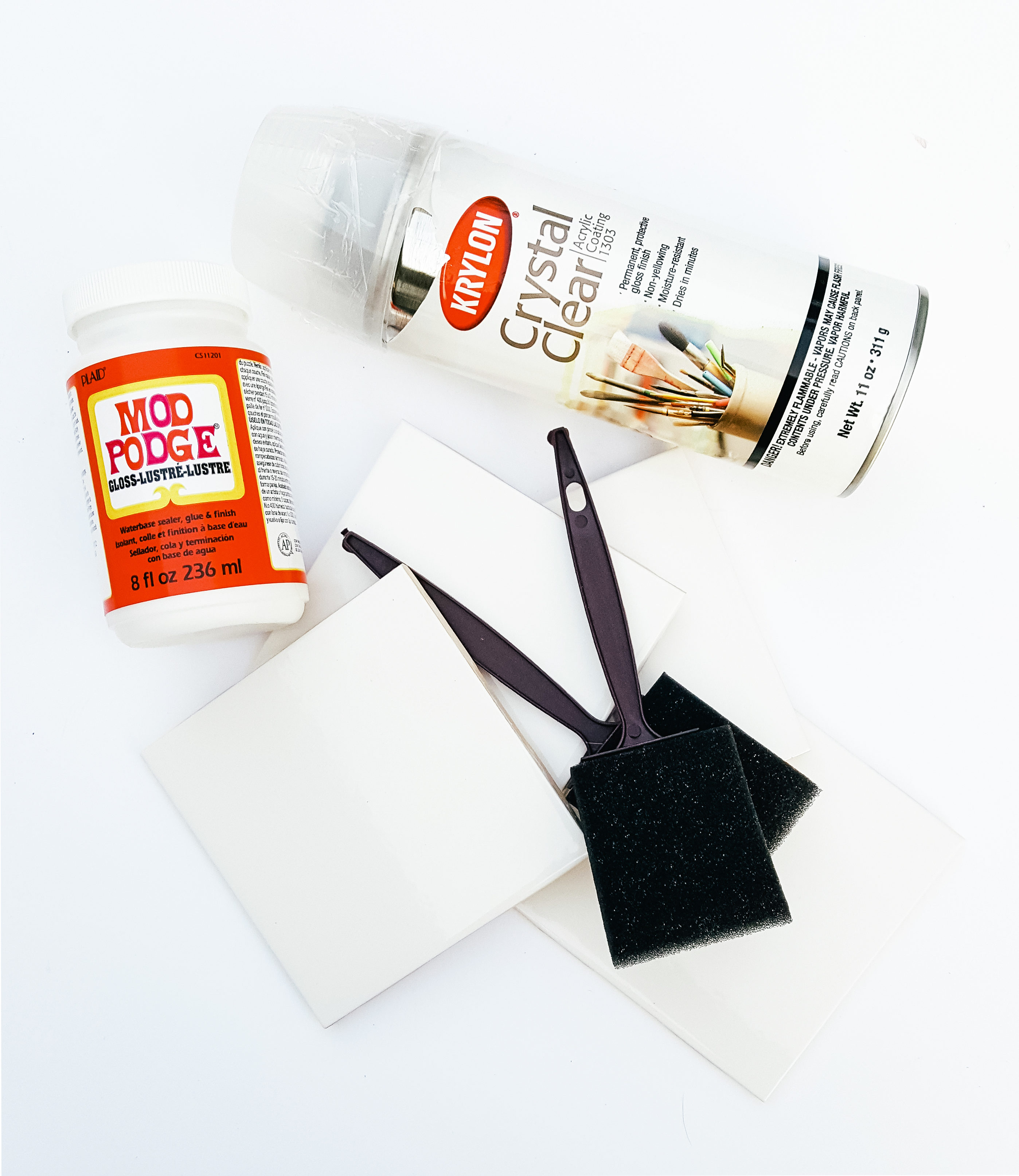 - Cover tile with a thin layer of mod podge using sponge brush.